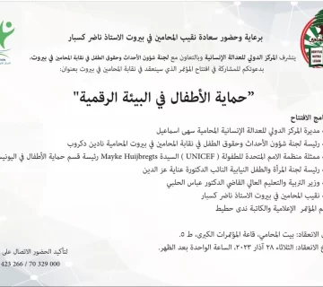 On 16/2/2023, the International Center for Humanitarian Justice HUMAN ACTION held a conference in the Bar Association under the sponsorship of His Excellency Captain of Barors, Mr. Nazir Kasbar, under the title: